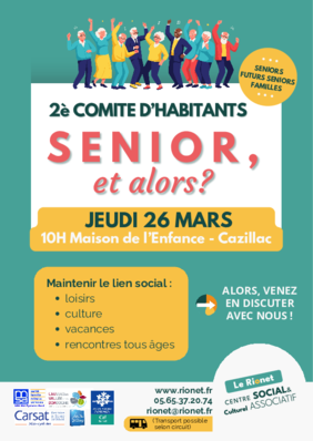 Le centre social du Rionet s’engage davantage pour les séniors ! En partenariat avec la Carsat Midi-Pyrénées et la MSA, l’association met en place un comité d’habitants « Sénior, et alors ? » ouverte aux habitants retraités du territoire et à leur famille.