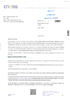 Veuillez trouver ci-joint l'information reçu par ENEDIS.